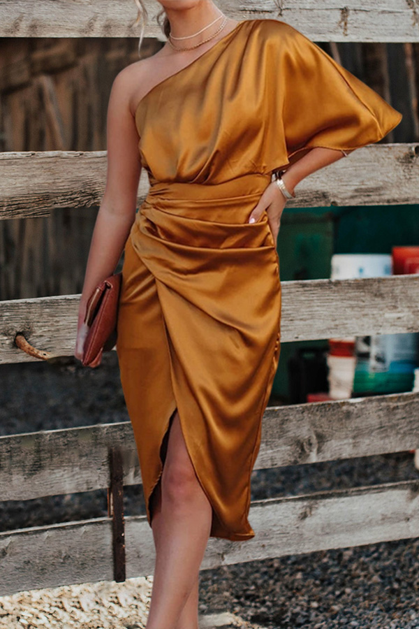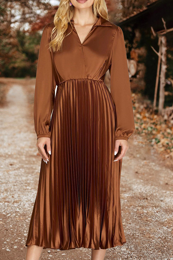 Gorgeous Pleat V-Neck Satin Midi Dress