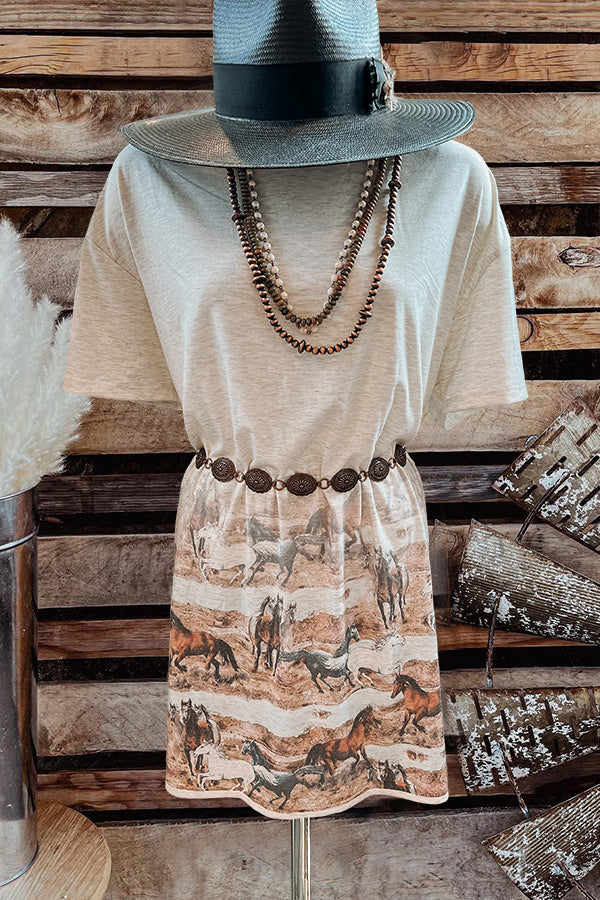 Casual Run Wild Horses Graphic T-shirt Dress