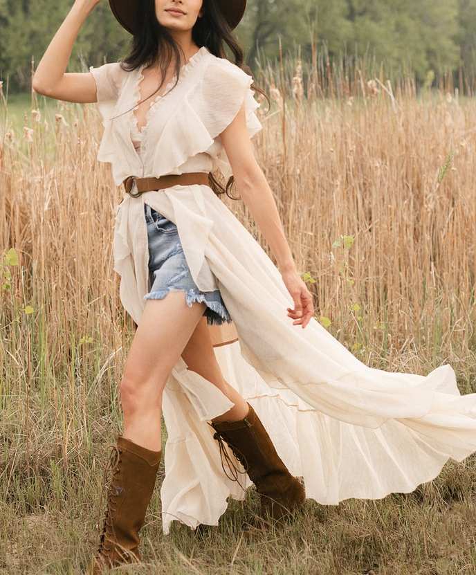 V-neck Waistless Ruffled Mini dress