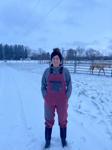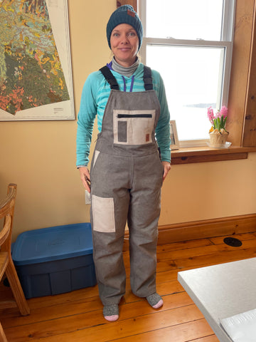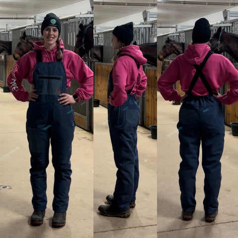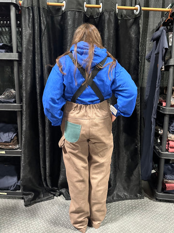 Sydney is shown here wearing a size medium, insulated pair in the long length. She is 5'6" and typically wears size 27/28 jeans and S/M in tops. She said she could likely have gotten away with a size small in the waist but the medium gave her the extra room she needed in the thighs.