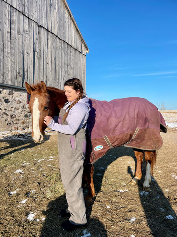 Janelle is shown here wearing a size medium, insulated pair, in the long length (before we had regular!). She is 5'8" and typically wears size 29 jeans and a medium top.